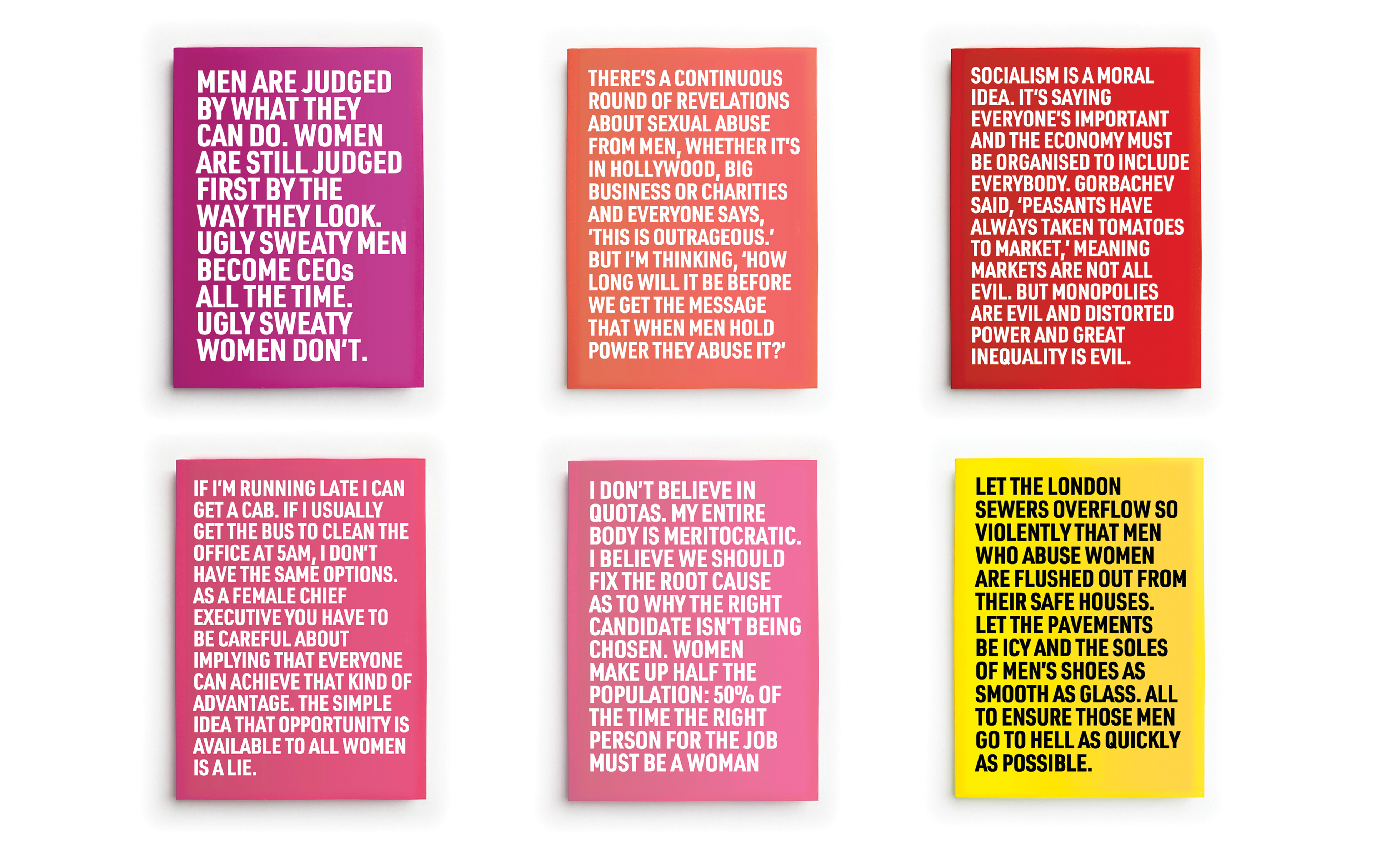 These six feminist pamphlets contain transcripts of interviews between the artist and women prominent in business, the media and public life.