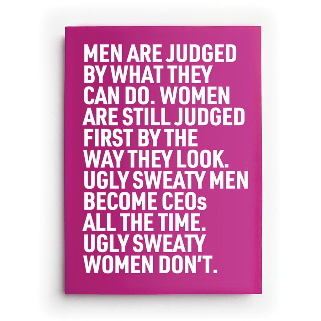 'As a woman you do feel that you're completely under scrutiny. There's another thing too, though the majority of men don't notice this, I see ugly, sweaty men in positions of power: ugly faces, ugly features, ugly personalities and I think, 'They made it to that position but you would never get a woman who vaguely looked like that in the same job.'