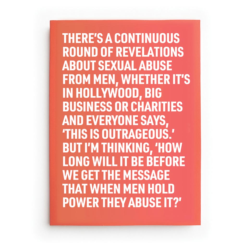 'I do think entitlement is one of the issues around men and power. Men think that they're entitled to rise, entitled to lead, entitled to dominate. If you think about how there's a continuous round of revelations about sexual abuse whether it's Hollywood or charities. Everyone says, 'This is outrageous.' And I'm thinking, 'But how many times do we have to see that when men hold power they abuse it, before we get the message.'
