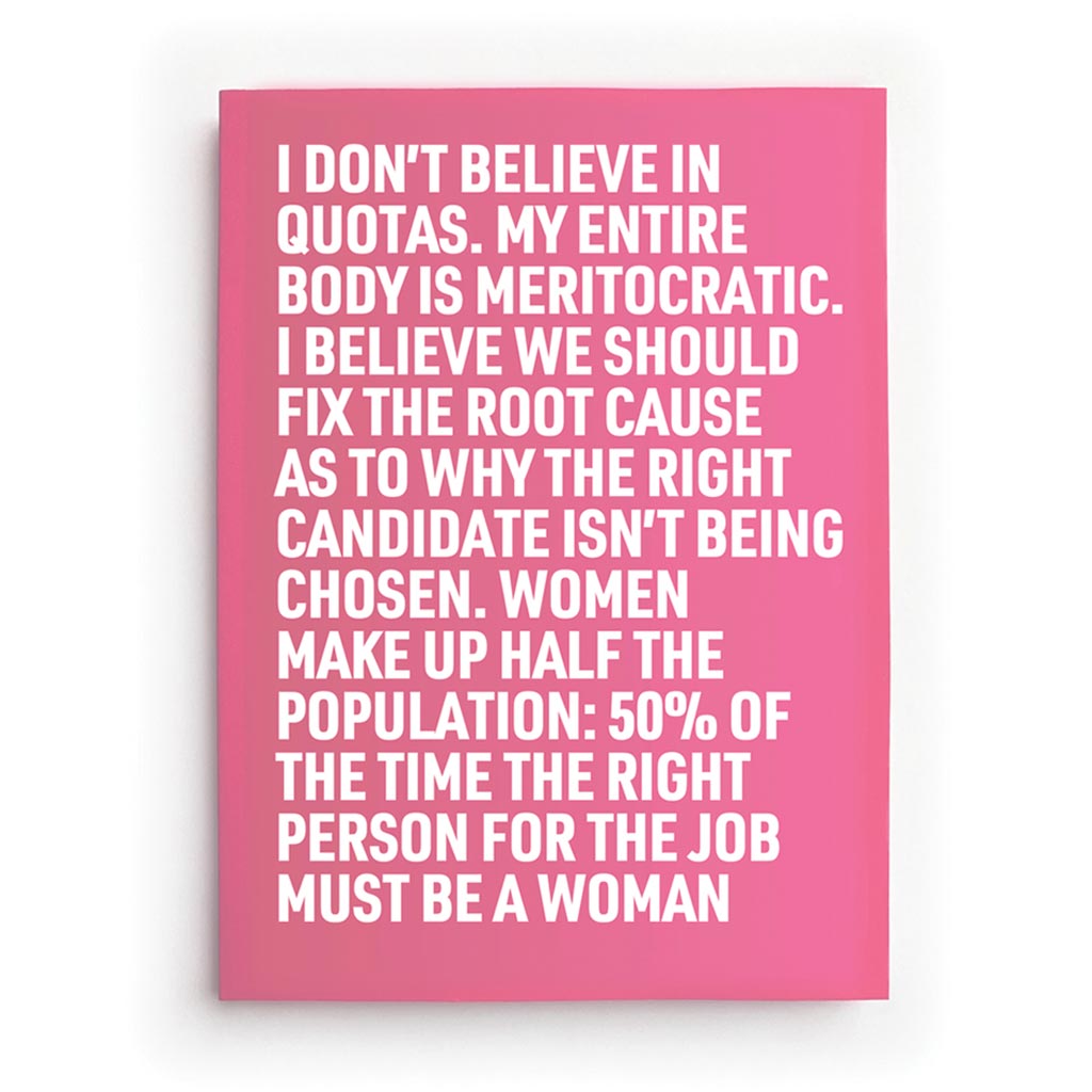 I don't believe in quotas, right? I absolutely don't because society should not need quotas to drive it forwards. I'm a massive fan of meritocracy. I'm all about meritocracy. My entire body is meritocratic.