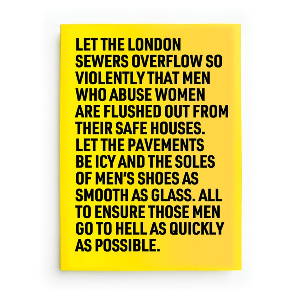 L-R bottom: 'The Simple Idea' (with Alex Mahon CEO Channel 4), 'Women Make Up Half the Population' (with Liv Garfield CEO Severn Trent) and 'Let the London Sewers Overflow' (the artist's translation into contemporary English of Jane Anger's Protection for Women, 1589).