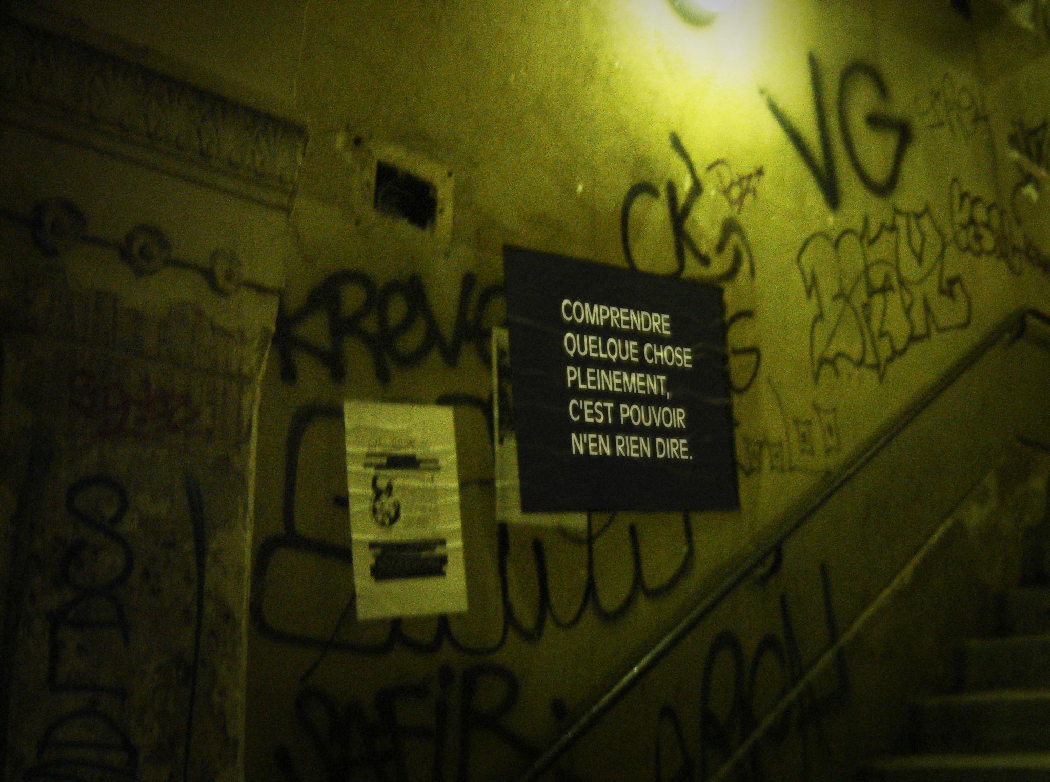 The pamphlet, titled Lucid Between Bouts of Sanity, meditated on the limitations of language, drawing the conclusion that only a limited language, or the absence of language entirely, was equal to the task of expressing complete and profound understanding of a thing.